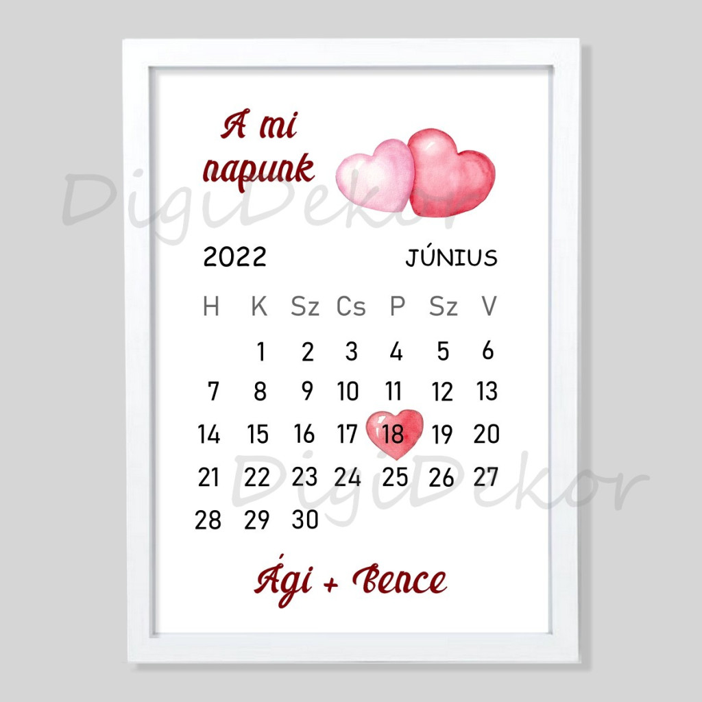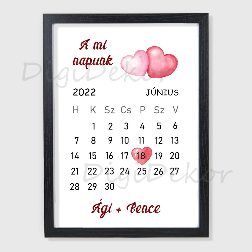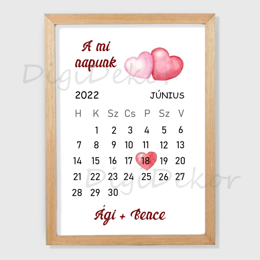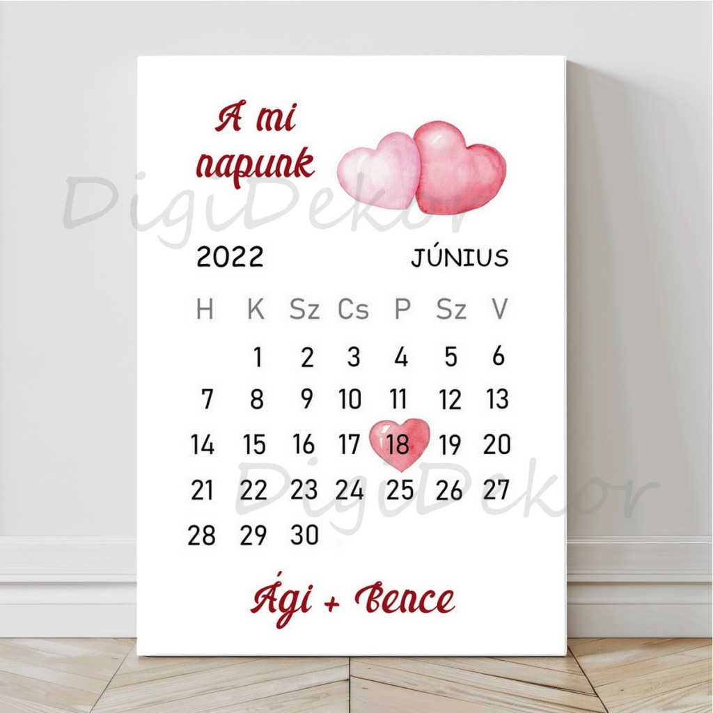 Egyedi, naptáras tábla pároknak. Hangulatos, személyes falikép évfordulóra, esküvőre, karácsonyra. A képet más szöveggel is kérheted!